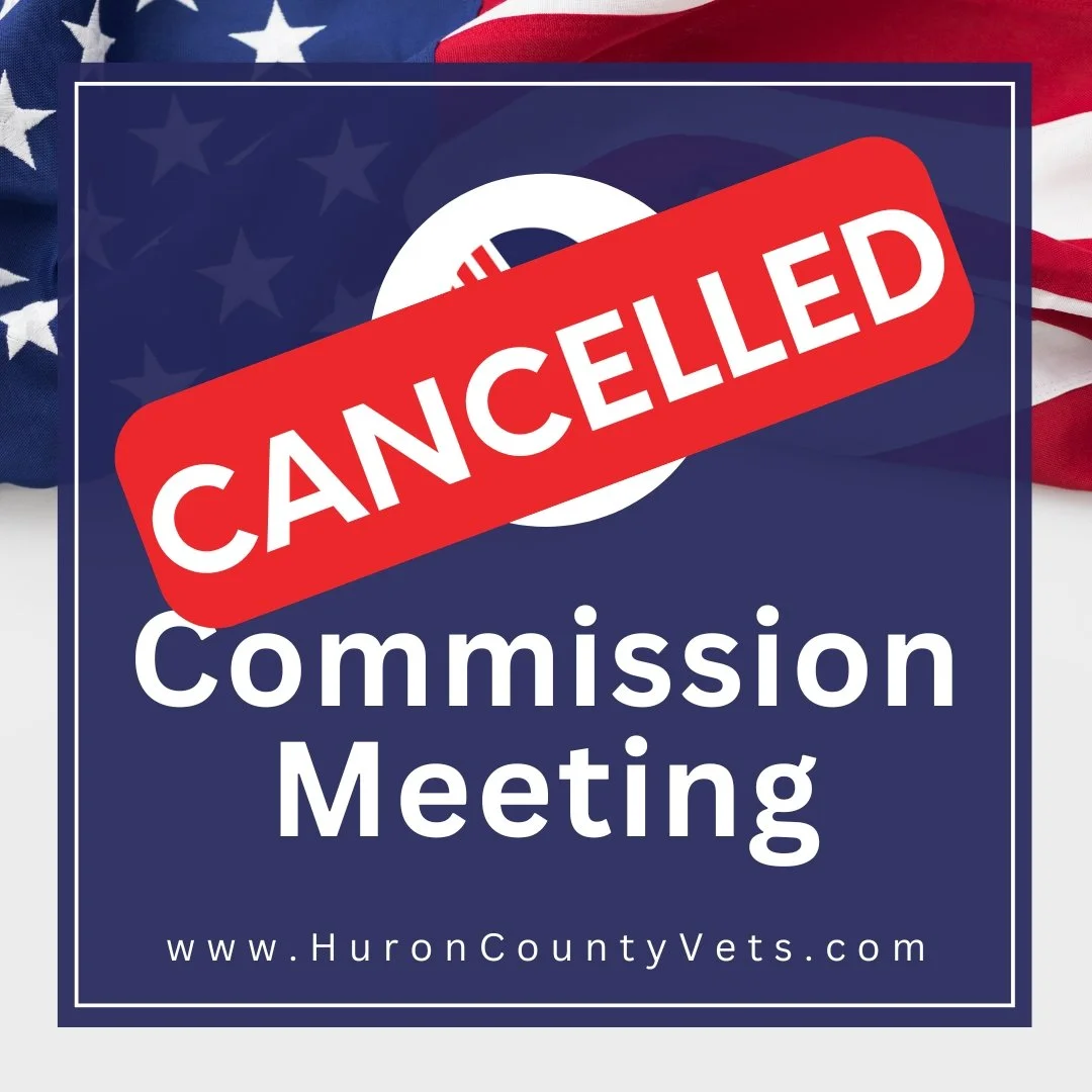 HCVSO Commission Meeting Monday, April 6, 2026 10:00 AM 12:00 PM 10:00 12:00 Google Calendar ICS The Commissioner Meeting on Monday, April 6th is cancelled and will be rescheduled to a later date. Please contact the Huron County Veteran Services Office with any concerns or needs. Thank you.